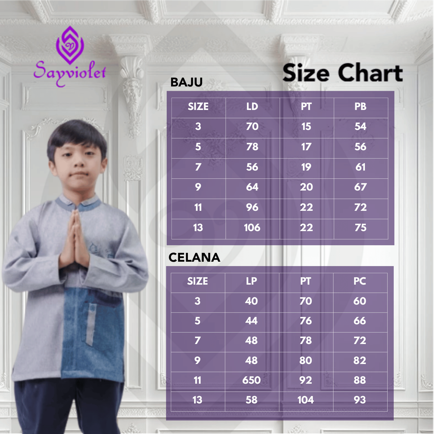 Menggunakan bahan Toyobo kombinasi dua warna yang berkualitas. Tekstur kain halus, adem di kulit, dan ringan saat dipakai anak beraktivitas. Tidak mudah kusut dan nyaman untuk pemakaian harian maupun acara spesial.