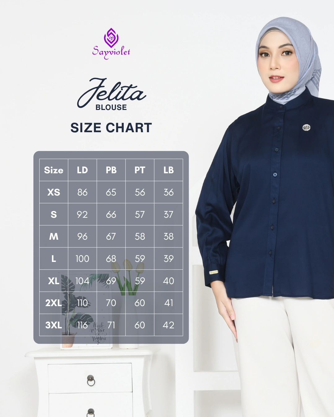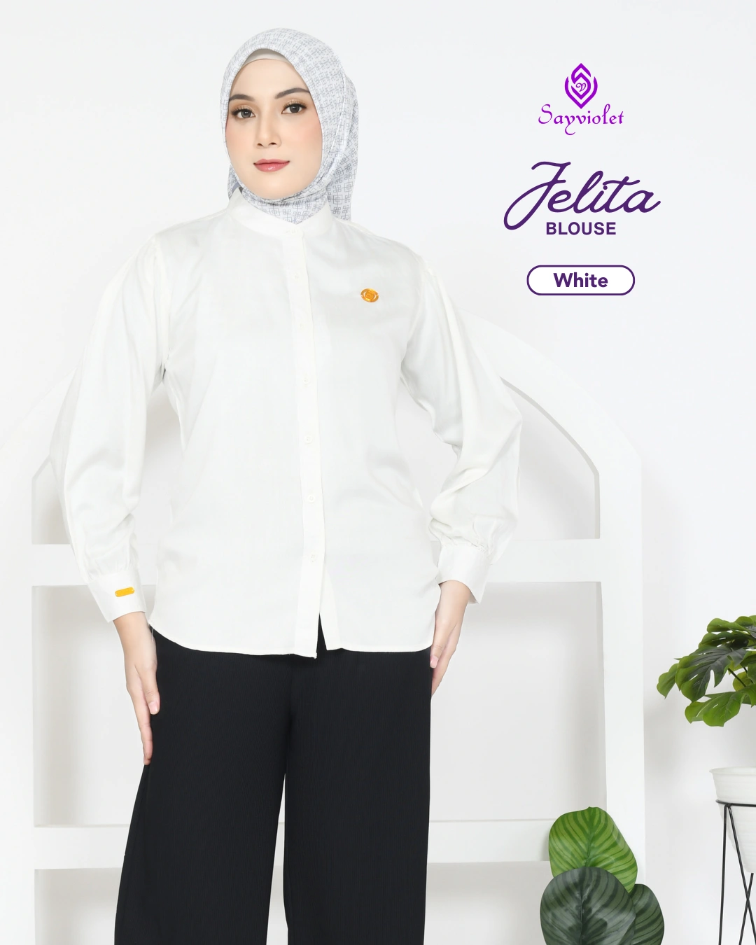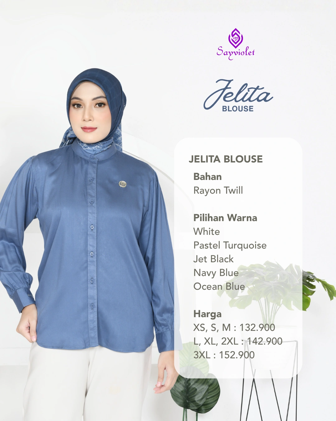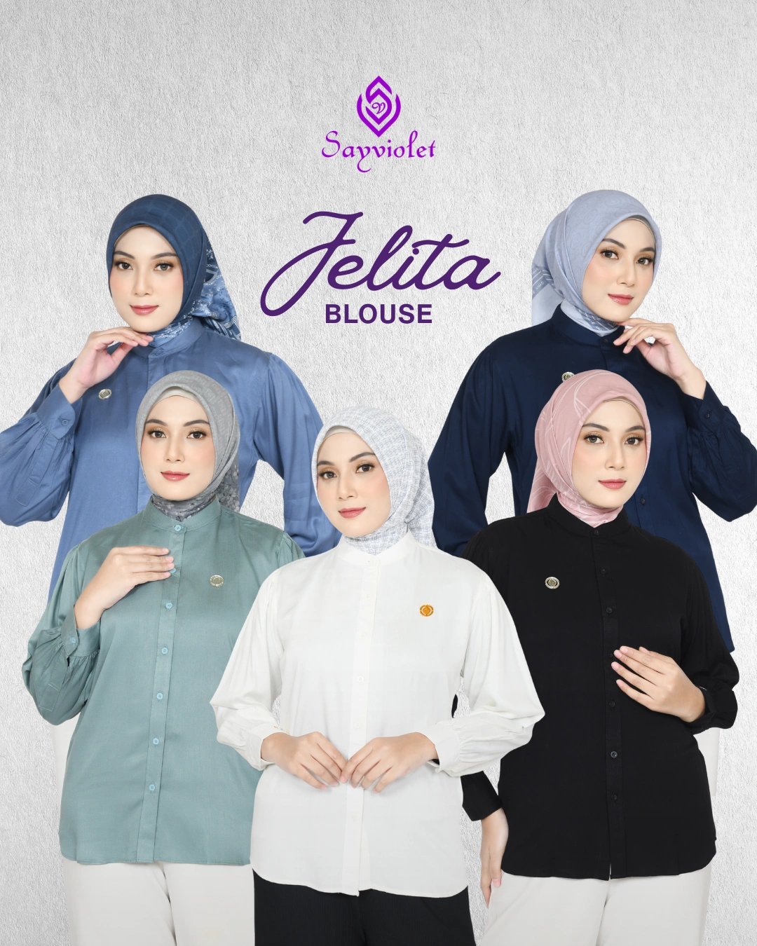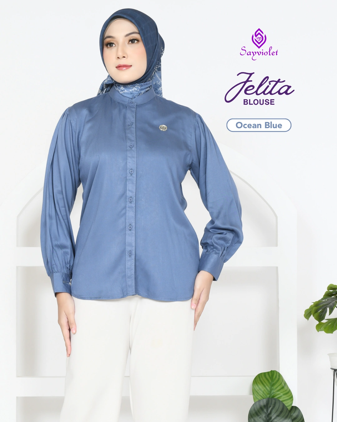 – Kerah shanghai dengan kancing depan, memberi sentuhan rapi dan busui friendly