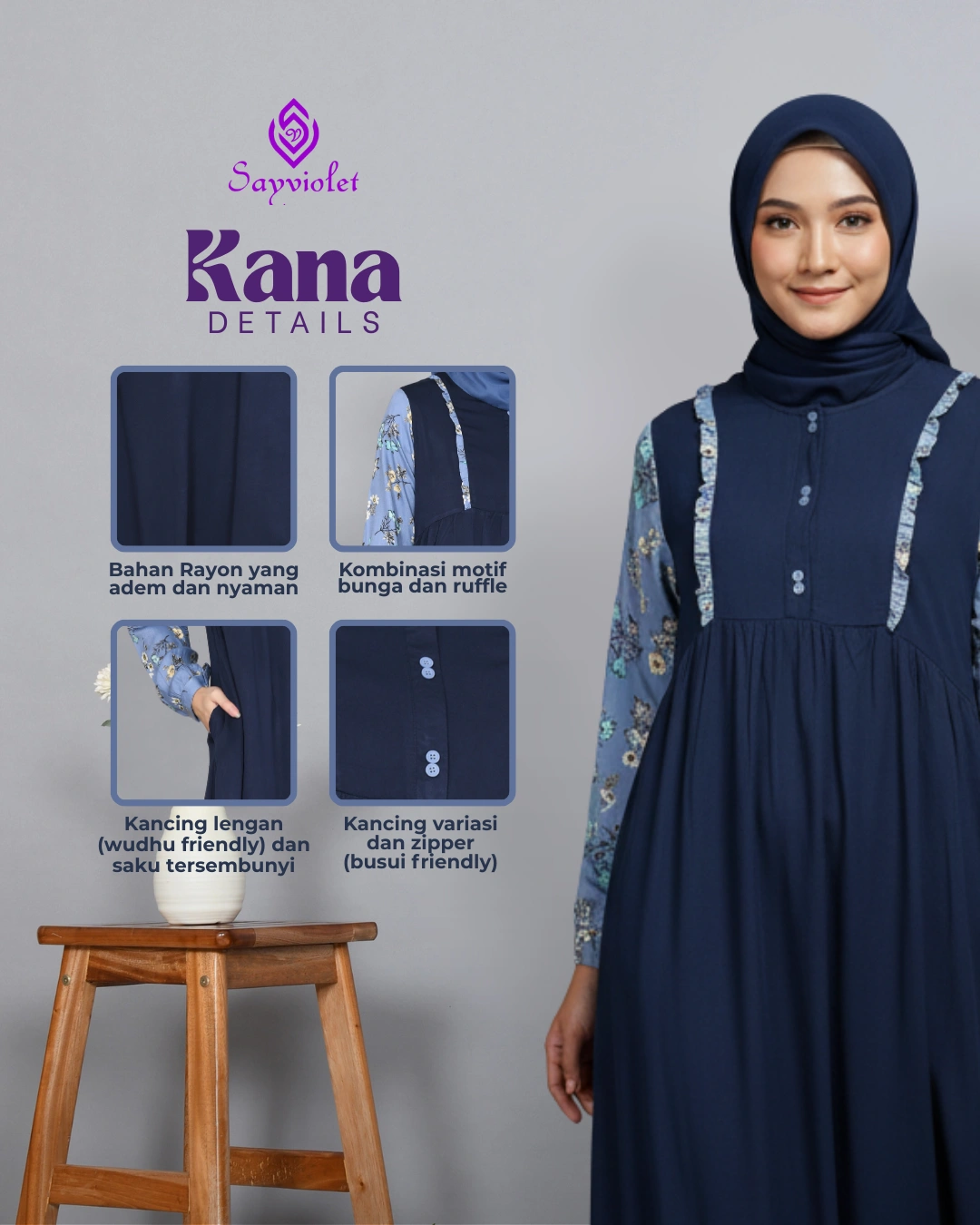 – Bahan Rayon yang adem, nyaman, dan ringan di kulit
