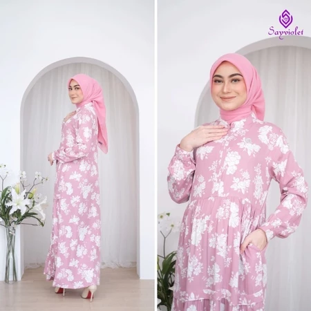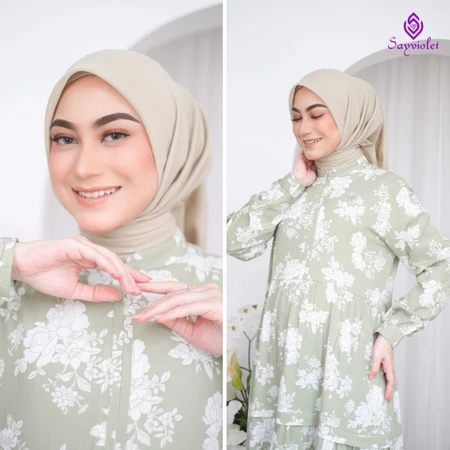 – Menggunakan bahan rayon twill dengan motif bunga elegan dan cantik